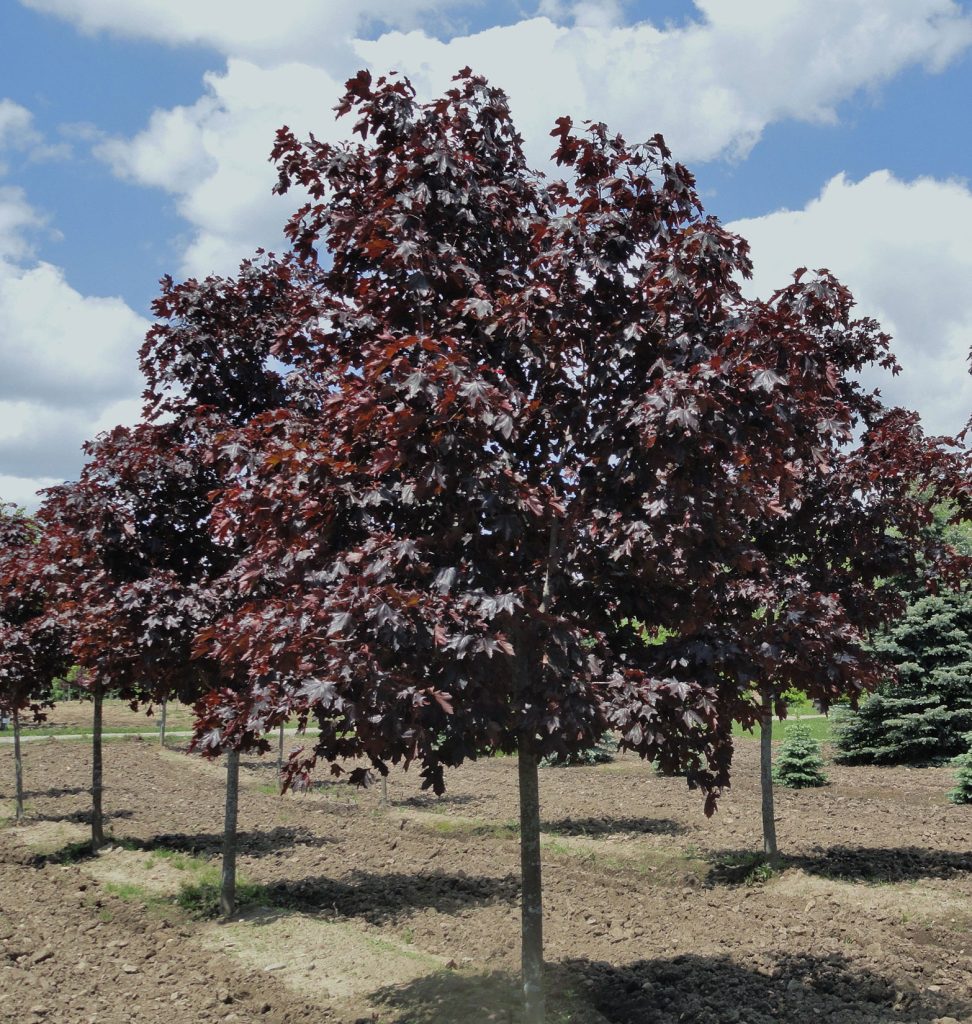 Mature Height - 35' Mature Width - 30'Glossy dark red foliage retains its colourthroughout the growing season.An excellent shade tree.