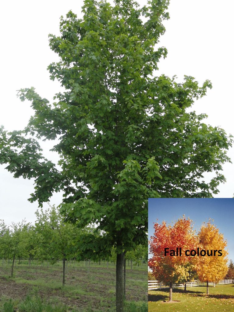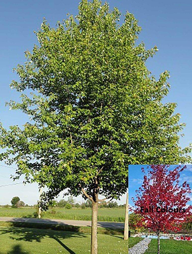 Mature Height - 45' Mature Width - 35'A hybrid cross between Red and Silver Maple. This popular,fast growing tree has green…